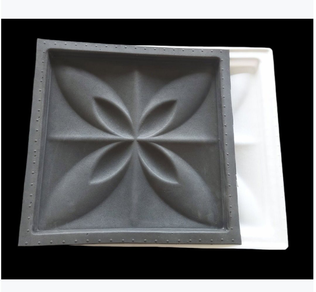 Molde compuesto de goma eva y base en PVC alto impacto, para realizar placas antihumedad de yeso. Medidas: 34 x 34 x 3 cm.