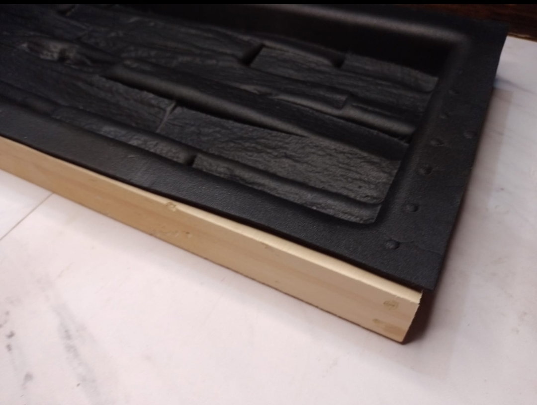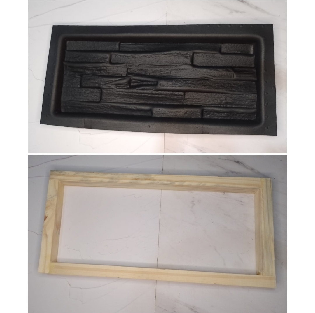 Molde realizado en goma eva con marco de madera, para realizar placas antihumedad en yeso. Medidas:14x36cm