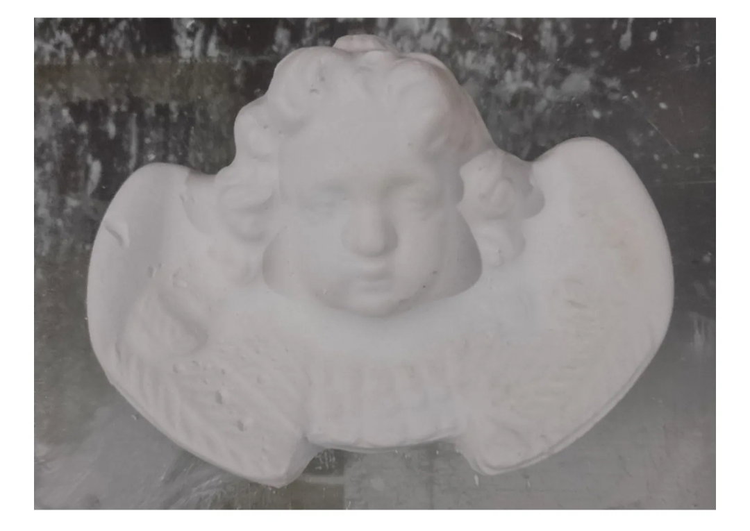 Molde en goma eva para fabricar pieza decorativa en yeso de Angelito. Medida: 9x12cm